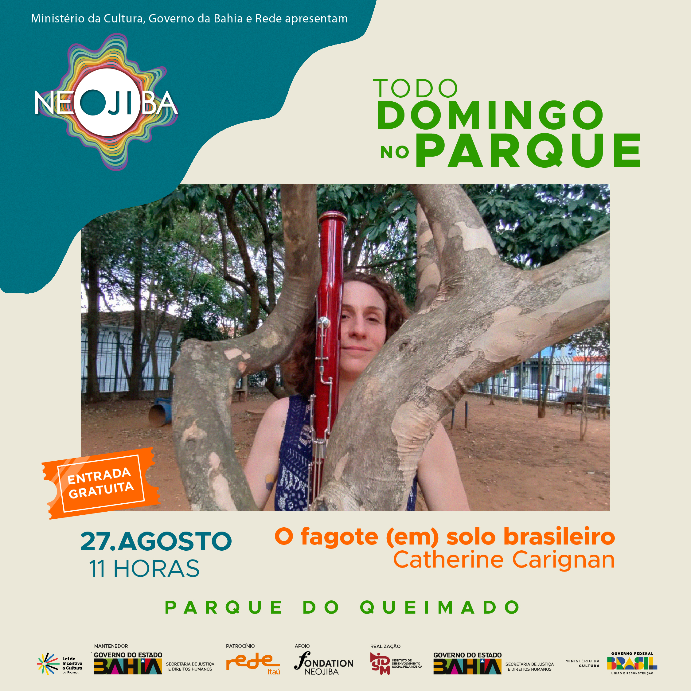 A fagotista canadense Catherine Carignan desembarca em Salvador para o recital "O fagote (em) solo brasileiro", neste domingo (27). O recital que faz parte do "Todo Domingo no Parque", será às 11h, no Parque do Queimado, Liberdade. A entrada, como sempre, é gratuita.