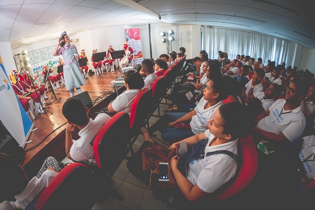 A Viagem aos Limites Planetário desembarcou em Salvador nesta quarta (30). O concerto didático, que será apresentado em diversos municípios baianos, marca o encerramento do terceiro ano do projeto Orquestra Plástica do NEOJIBA. O musical foi apresentado em duas sessões, às 10h e às 15h, aos participantes do projeto Jovem Aprendiz Empreendedor, do Parque Social. Eles lotaram o auditório do espaço, que funciona dentro do Parque da Cidade, no bairro do Itaigara, e puderam conhecer a tecnologia inovadora de construção de instrumentos para iniciação musical a partir de materiais plásticos. Durante o musical, foram apresentadas algumas criações da equipe do Atelier de Lutheria de Plástico do NEOJIBA, como o banjolino, pvsax, easytrompa, além de adaptações construídas com cano PVC de instrumentos como violino, viola, violoncelo e flauta. Na ocasião, os jovens aprendizes empreendedores também refletiram sobre temas como sustentabilidade e o uso dos recursos naturais. Como não poderia deixar de falta, também teve música. O repertório contou com obras da música popular brasileira como Planeta Água, de Guilherme Arantes, Refazenda, de Gilberto Gil, e Lilás, de Djavan. Os arranjos e a direção musical ficam por conta do professor Jamberê, membro fundador do NEOJIBA. O grupo é formado por Cely Venturini, Dâmaris dos Santos, Fabrizio D’andreamatteo Filho e Reinaldo Silva (violinos), Allan Resedá, Karen Silva e Nataly do Vale (violas), Joás Cruz (violoncelo) e Rafael Dias (flauta). Silas Pereira, de 19 anos, é um dos jovens aprendizes que assistiram à apresentação. Ele faz o curso de auxiliar administrativo no Parque Social e ficou atento às possibilidades criadas pelo projeto Orquestra Plásticas para o cano de PVC. “Eu nunca tinha visto nada parecido. Fiquei impressionado, não sabia que era possível fazer instrumento com plástico. Achei bem inovador”, conta o estudante. Orquestra Plástica Com o objetivo de desenvolver uma tecnologia social para ampliar o acesso à iniciação musical, o NEOJIBA propôs o projeto Orquestra Plástica. O projeto tem patrocínio da Braskem e do Governo do Estado, através do Fazcultura, Secretaria da Fazenda e Secretaria de Cultura do Estado da Bahia. A base da iniciativa é a construção de instrumentos a partir de materiais plásticos e capacita adolescentes e jovens no ofício da lutheria, uma articulação por meio da música dos campos da sustentabilidade e da inclusão socioprodutiva. A equipe que lidera o aprimoramento desta técnica de construção de instrumentos sinfônicos de plástico são os luthiers Andre-Marc Huwyler, David Matos, Alan Jonas e Natan Paes.