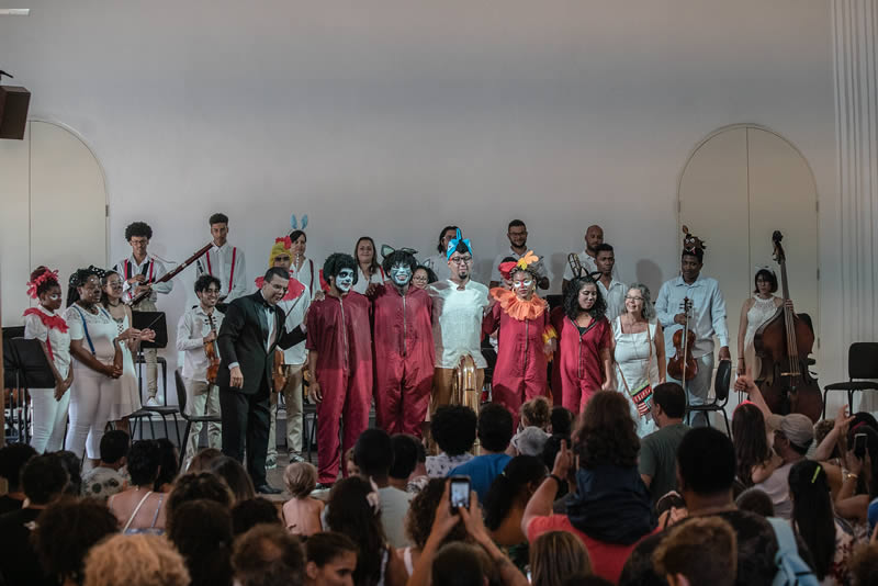 ALEGRIA e PROGRAMAÇÃO INFANTIL – Antes disso, às 11h, a alegria tomou conta da criançada com a apresentação de ‘Saltimbancos’. 24 músicos e quatro cantores solistas interpretaram as obras do musical compostas pelo ítalo-argentino Luis Enríquez Bacalov e pelo italiano Sergio Bardotti. O músical foi adaptado para a língua portuguesa em 1977 pelo brasileiro Chico Buarque. “Como já fazem 42 anos, atualizamos algumas expressões para o século XXI”, explicou o regente do NEOJIBA, Helder Passinho.