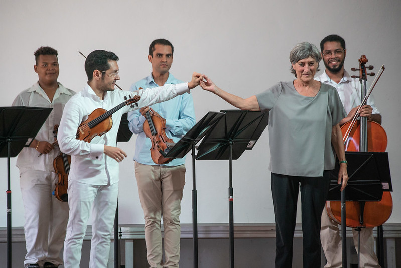 “Estamos muito honrados e gratos por ter a violinista e regente suíça, Chiara Banchini, referência internacional da música barroca, liderando mais uma vez concertos do NEOJIBA”, afirmou o diretor Musical do NEOJIBA, o pianista e maestro Eduardo Torres, ao apresentar os concertos que começavam às 11h na Sala principal do Núcleo Central do NEOJIBA, patrocinado pelo Instituto CCR e que tem o apoio da CCR Metrô Bahia.
