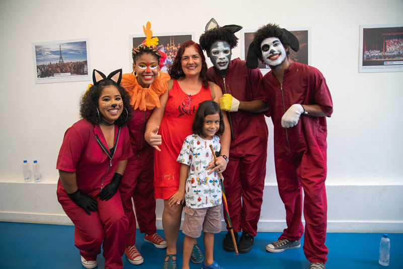 A professora da UNEB (Universidade do Estado da Bahia), Eliana Vasconcelos, 44, levou seu filho, Pedro, de 6 anos, para assistir aos Saltimbancos, história predileta do pequeno. Os dois acompanharam todas as músicas, pois conhecem de cor. “Este lugar é lindo, com muitas árvores, é tão agradável chegar e ser recebido com uma energia boa e aberta. E é maravilhoso vir para um programa desse com o filho, porque sua infância é chamada de volta. O musical está redondinho, com uma mensagem que o Brasil inteiro está precisando entender, de que juntos somos mais fortes! Fiquei muito emocionada. É a primeira vez que venho aqui. Mas vou voltar, com certeza!”