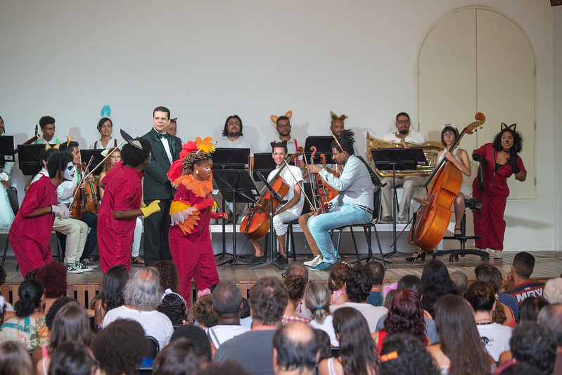 Os integrantes do Coro Juvenil do NEOJIBA Alexsandra Brasileiro, Gabriel Soledade, Iuri Nery e Maria Fernando Cardoso fizeram os personagens, a Gata, o Cachorro, o Jumento e a Galinha, respectivamente, alegrando e fazendo a plateia interagir. Com um repertório conhecido e arranjo orquestral do compositor e tubista baiano, Jamberê Cerqueira, membro fundador do NEOJIBA, as músicas foram acompanhadas pelo público, em muitos momentos, com canto e palmas.
