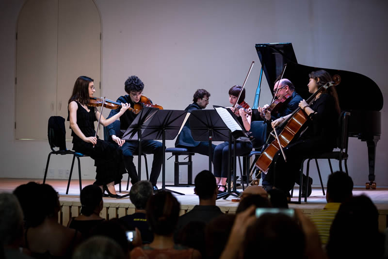Na apresentação no Parque do Queimado, a orquestra foi substituída por um quinteto de cordas. E ao piano estava o impressionante Mertol Demirelli, nascido na Turquia, que começou a tocar o instrumento aos cinco anos. Aos sete, ganhou seu primeiro prêmio e fez centenas de concertos pelo mundo, como uma criança prodígio. Ele continuou os estudos na música – hoje é aluno de Ricardo Castro na Escola de Música de Fiesole, onde Edoardo Rosadini também ensina – e segue conquistando prêmios internacionais.