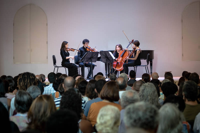 No palco, o jovem quarteto italiano Shaborùz abriu a manhã tocando o Quarteto de cordas em sol maior, op. 18 nº 2, uma das 16 peças deste formato compostas por Beethoven. No Dia Internacional da Mulher, o grupo, formado por três jovens musicistas - Angela Tempestini (violino), Anna Avilia (viola), Marina Margheri (violoncelo) - e por Amedeo Ara (violino), encantou os presentes e deu mostras do talento feminino num universo historicamente dominado pelos homens.
