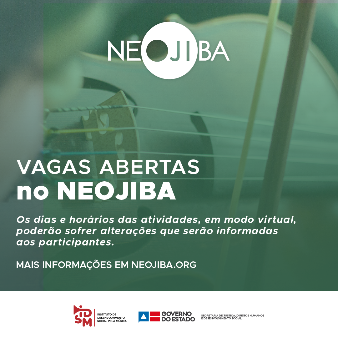 As pré-inscrições serão feitas apenas pela internet para os Núcleos de Prática Musical (NPM) e para os Núcleos Territoriais do NEOJIBA(NTN).