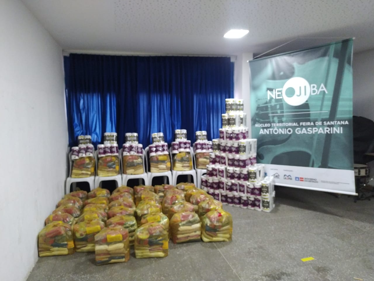 Com o intuito de apoiar os integrantes e seus familiares nesse momento crítico da pandemia, o programa NEOJIBA lançou, no início de abril, a campanha NEOJIBA Solidário, projeto de arrecadação de valores e alimentos para aquisição e doação de cestas básicas. "Vivemos um momento de incerteza onde tudo se torna cada dia mais difícil. Sentir-se acolhida nesse momento é um alívio em meio a todas as dificuldades”, comentou Maura Araújo, mãe de Samira Araújo, integrante do NTN de Feira e uma das beneficiárias das cestas.