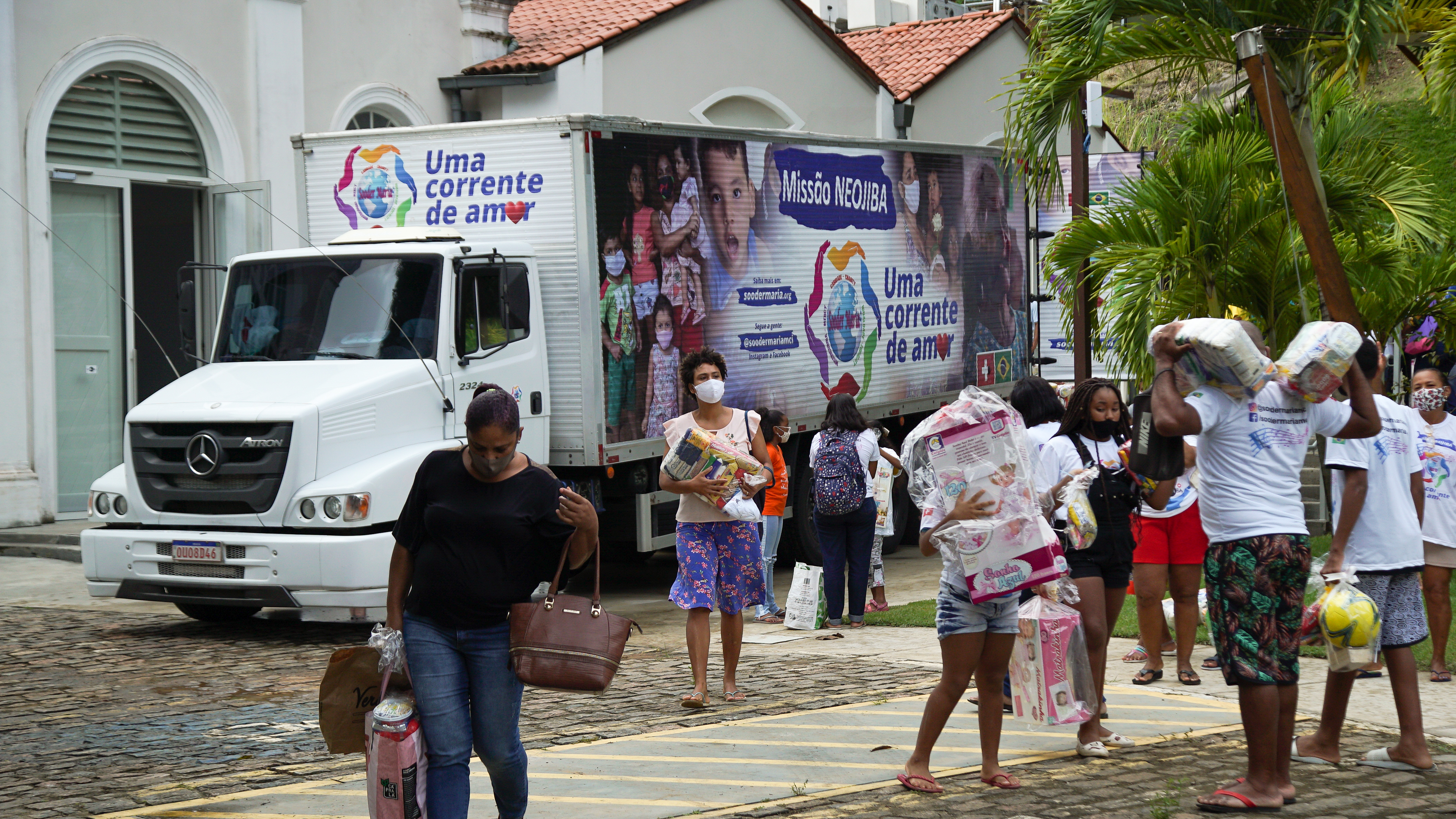 "A pandemia trouxe dificuldades para muitas famílias, inclusive para mim, que sou mãe e pai. Essa cesta vai ajudar bastante nesse momento excepcional. Eu só tenho a agradecer", conta Itajaira Conceição dos Santos, mãe de Cleyton, 11, e Yasmin, 9, integrantes do NEOJIBA. Na manhã desta terça-feira (6/7), eles foram uma das 600 famílias a receberem doações da ONG Sooder Maria, fundada na Suíça e que hoje tem duas sedes fixas, uma em Zurique, na Suíça, e outra no Brasil, em Caucaia, no Ceará.