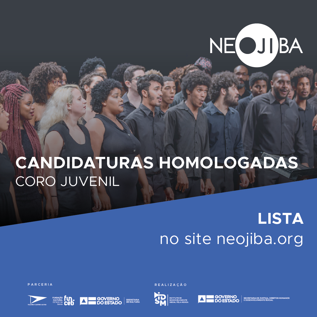 Confira a lista das candidaturas homologadas para a próxima etapa do processo seletivo do Coro Juvenil do NEOJIBA.
