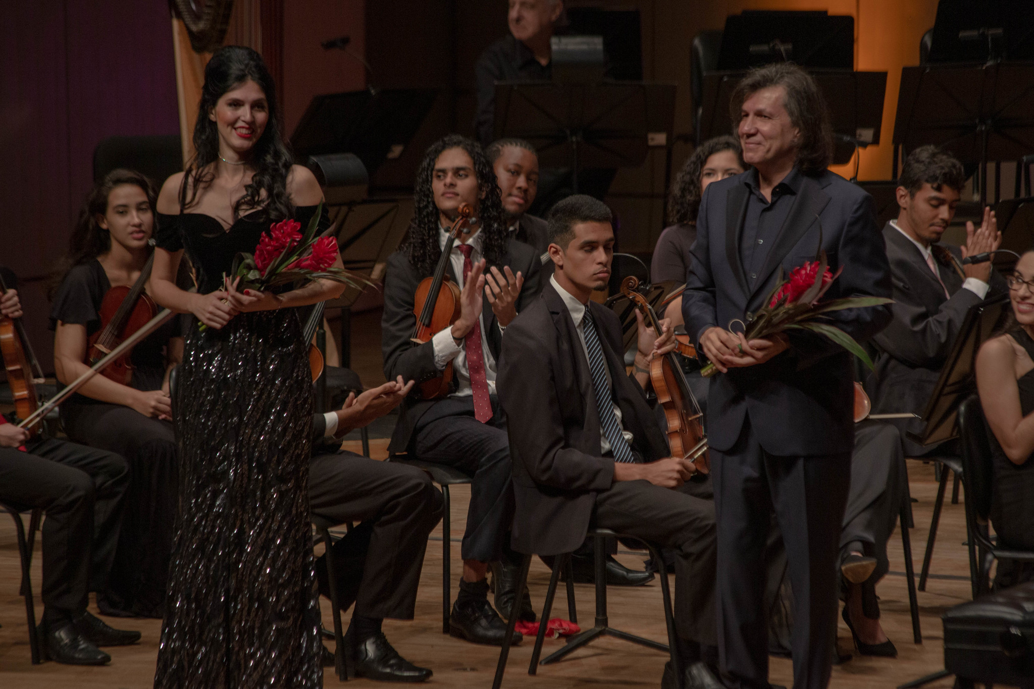 Na sequência, os solistas da noite, o pianista Ricardo Castro e a soprano ucraniana Olesia Matei, subiram ao palco para apresentar “Ch'io mi scordi di te?”, de Wolfgang Amadeus Mozart, reconhecida como uma das grandes árias de concerto do compositor austríaco. Olesia, que deixou o seu país para participar do intercâmbio cultural promovido pelo NEOJIBA, cantou no TCA pela primeira vez, num dos momentos mais comoventes do concerto. Ricardo e Olesia voltaram para um bis com a famosa ária "O Mio Babbino Caro", do italiano Giacomo Puccini.