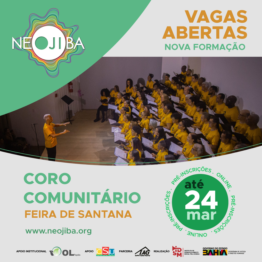 Essa é uma oportunidade para quem quer fazer parte do Núcleo do NEOJIBA de Feira de Santana, mas já não pode ser um dos nossos integrantes. O NEOJIBA está oferecendo a oportunidade de participação voluntária no seu Coro Comunitário, com 2 ensaios por semana no Centro Social Urbano (terça e quinta-feira, às 18h), para o público, em geral, maior de idade com ou sem alguma experiência musical (não é necessário saber ler partitura).
