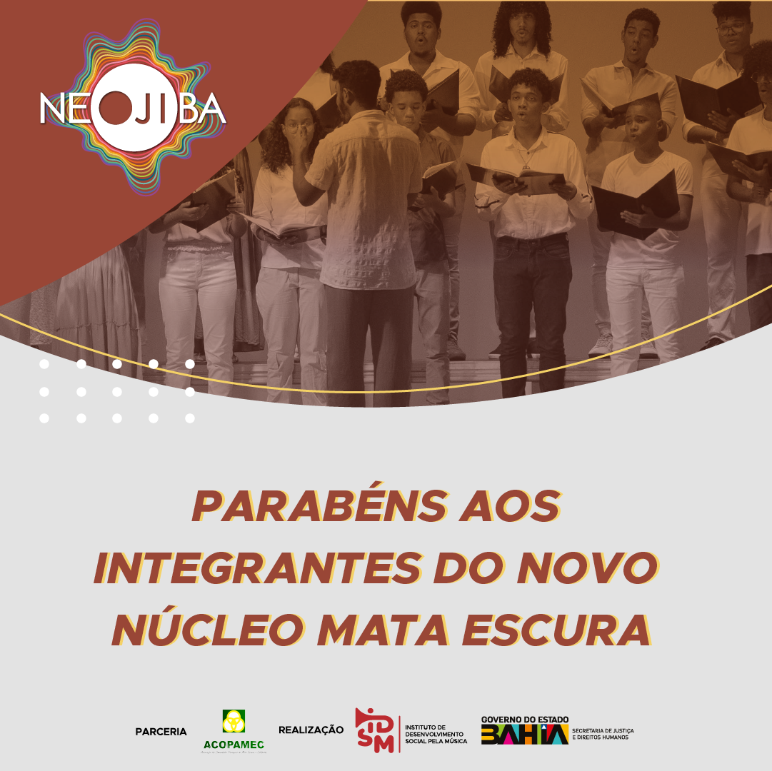 Temos o prazer de divulgar os nomes dos(as) selecionados(as) para uma das vagas para o Núcleo Mata Escura. Parabéns! Bem-vindos e bem-vindas ao NEOJIBA!