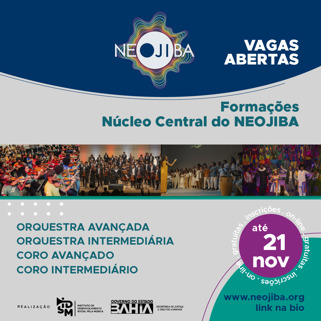 VAGAS ABERTAS PARA AS FORMAÇÕES DO NÚCLEO CENTRAL NEOJIBA