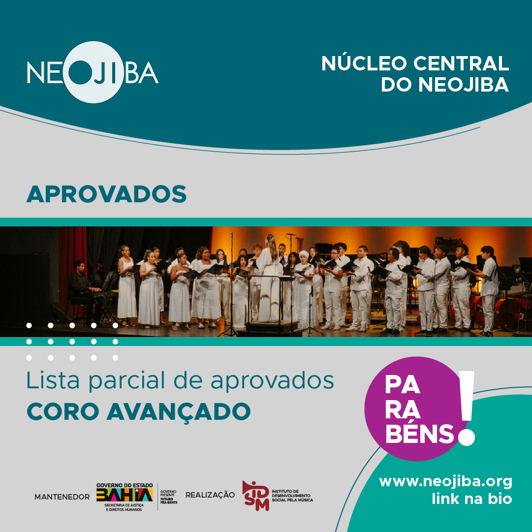 Parabéns aos aprovados e aprovadas para o Coro Avançado NEOJIBA 2026.