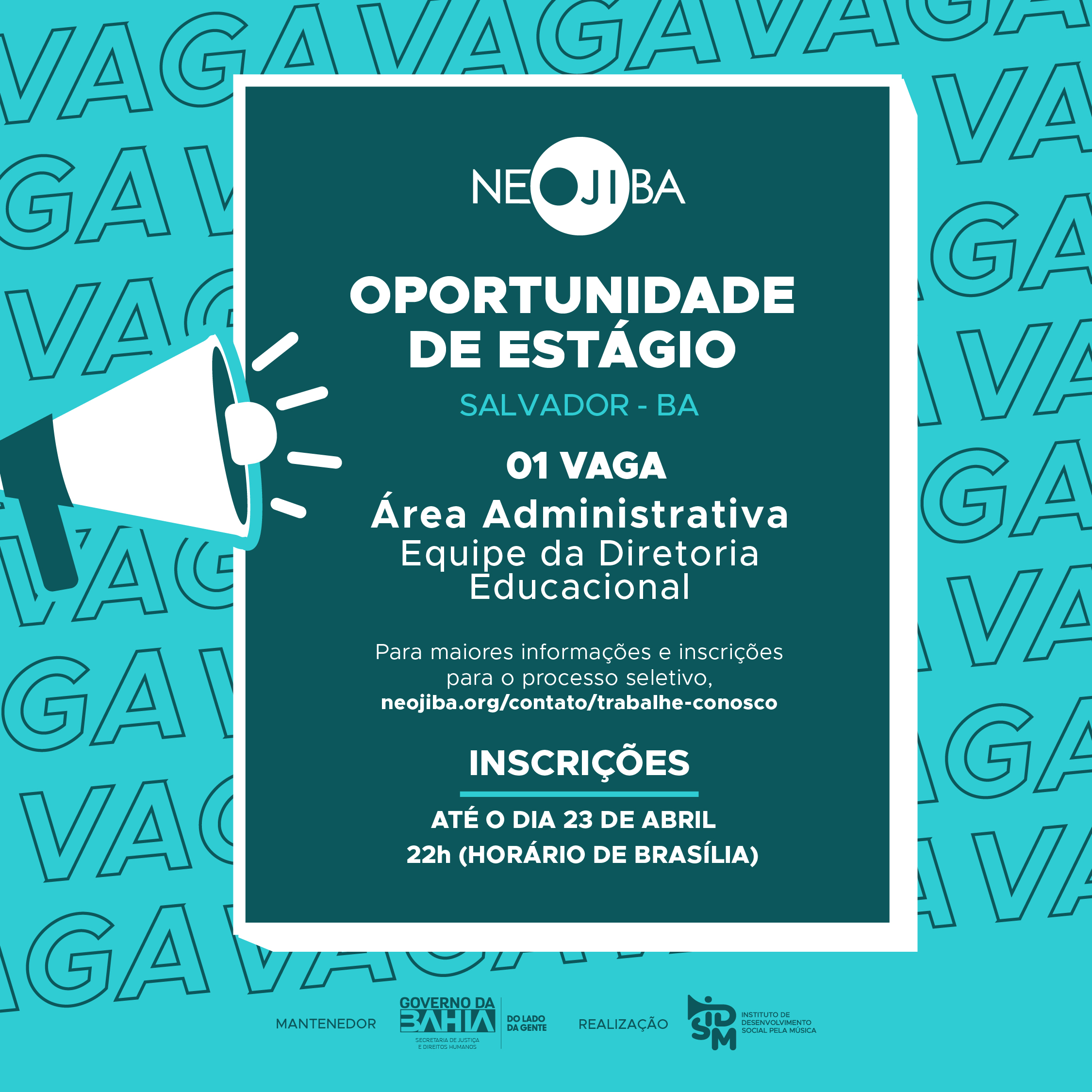 O Instituto de Desenvolvimento Social pela Música (IDSM), Organização Social que faz a gestão do PROGRAMA NEOJIBA (Núcleos Estaduais Juvenis e Infantis da Bahia), no uso de suas atribuições legais, torna pública a realização do Processo Seletivo Simplificado para contratação de 01 estagiário para atuar no setor pedagógico.
